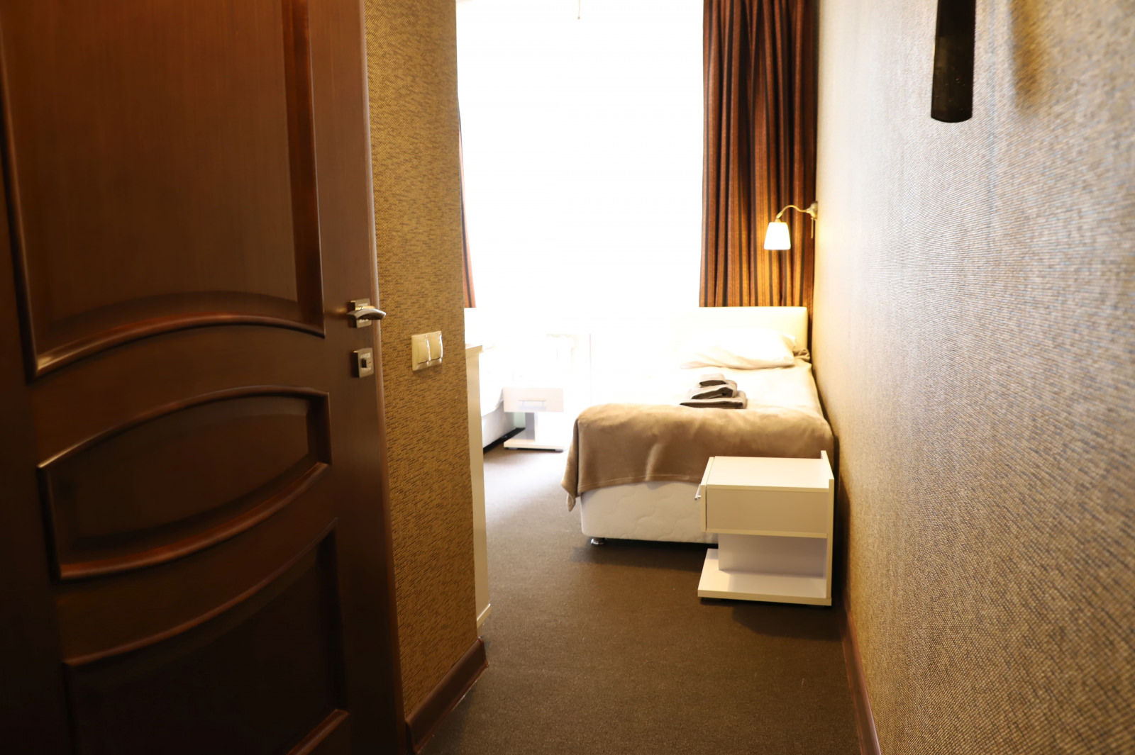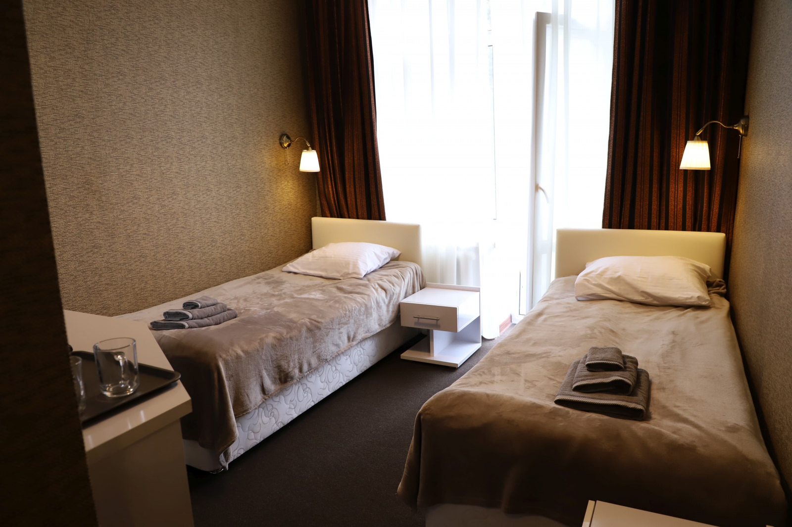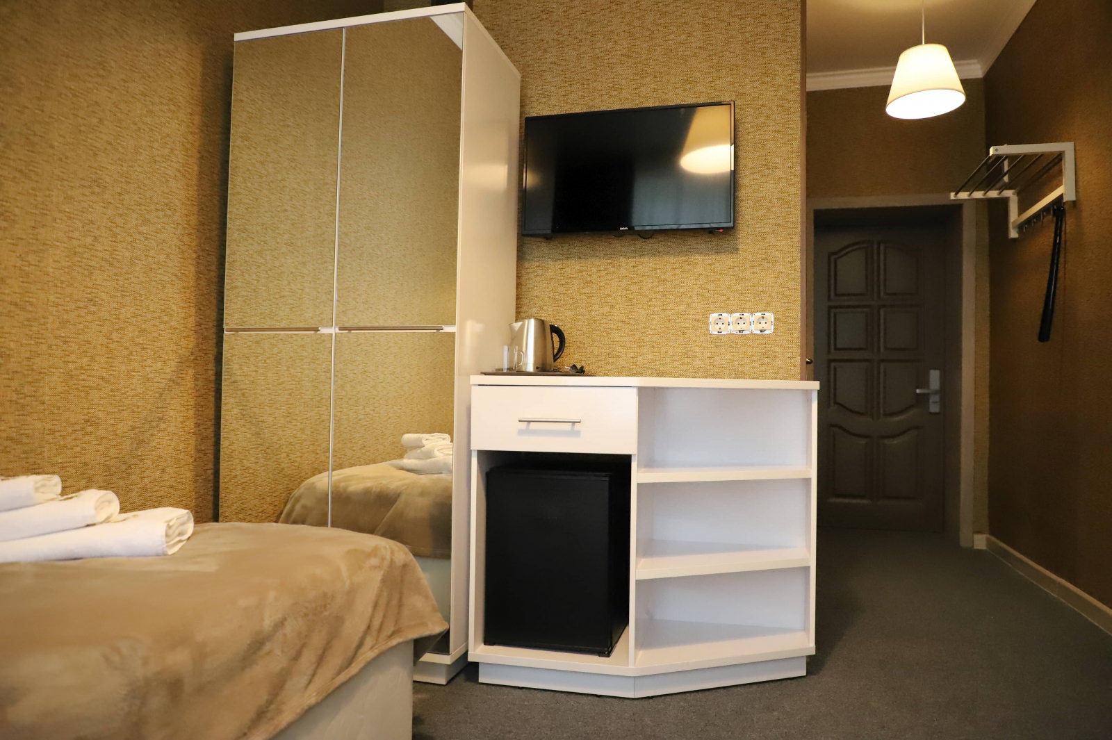 Просторный и светлый номер вмещает в себя двух человек. Здесь можно укрыться от суеты большого города и расслабиться, любуясь видом на сосновый бор и территорию санатория. Мы позаботились об удобной кровати и современной мебели, а также о самых необходимых бытовых мелочах. На случай непогоды предусмотрен телевизор, а в некоторых номерах на балконе организована релакс-зона.